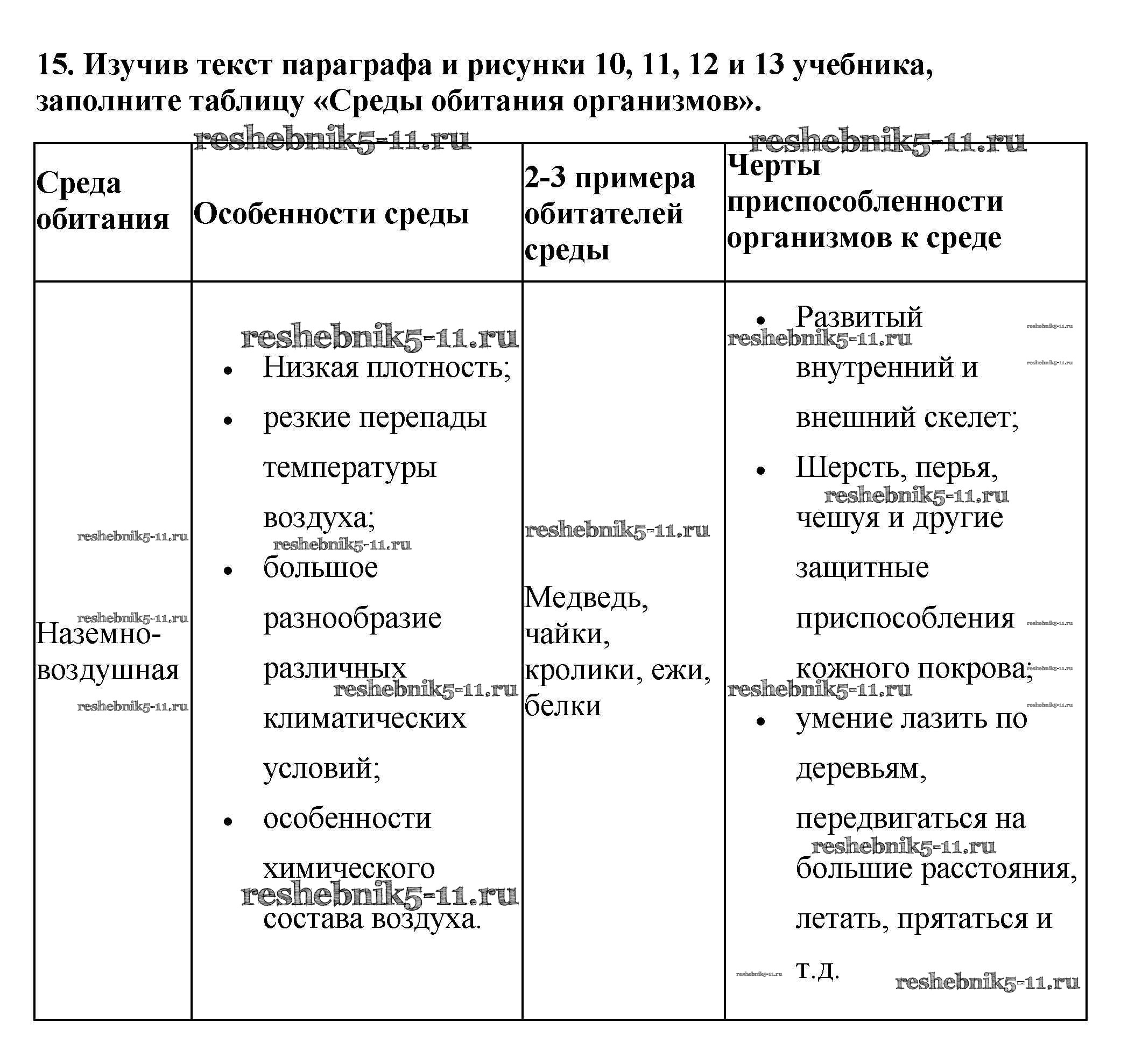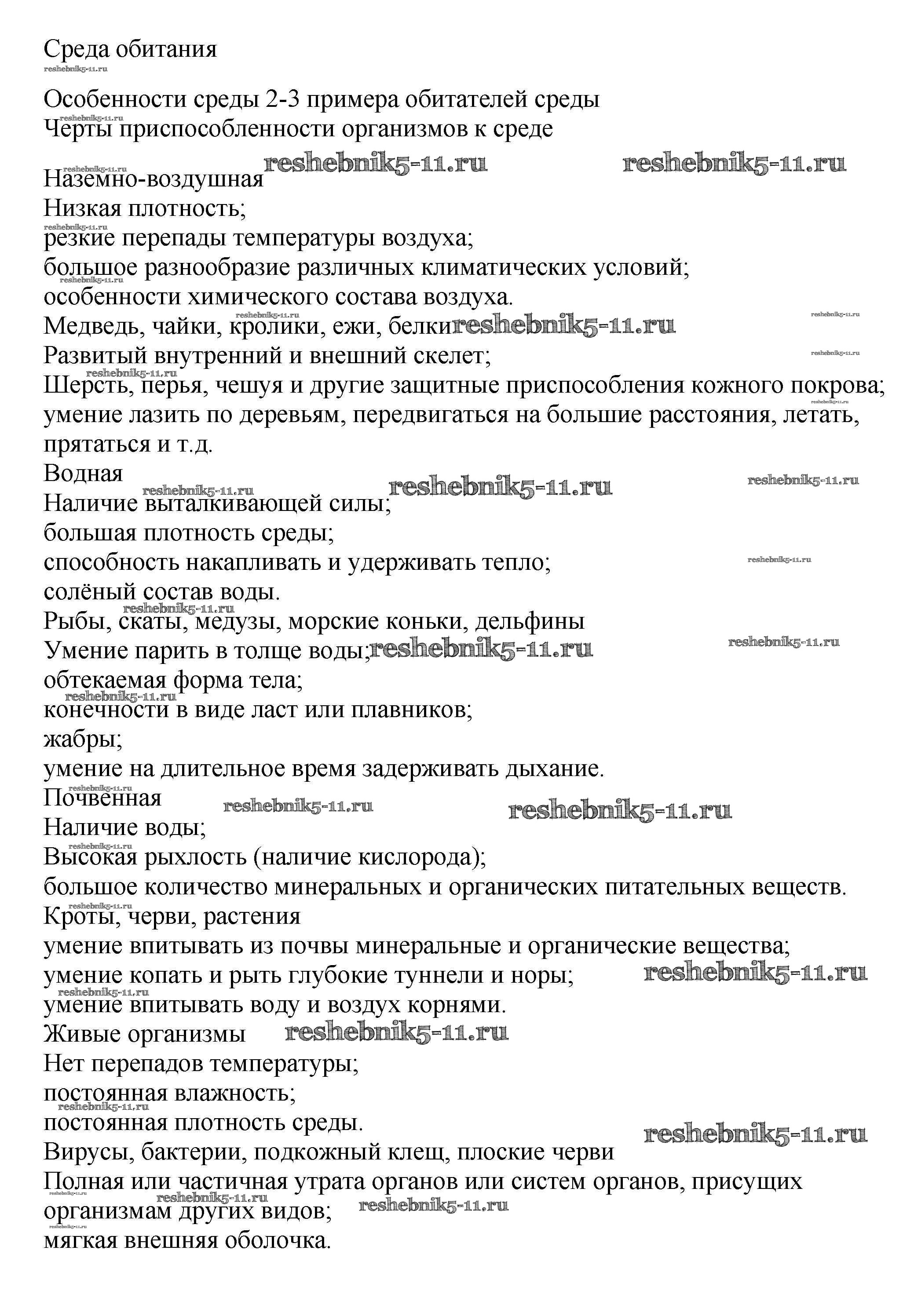 Готовая домашняя работа с ответами по Биологии за 5 класс Пасечник Рабочая тетрадь Вертикаль Дрофа 2015 ФГОС - § 4. Среды обитания организмов стр. 11