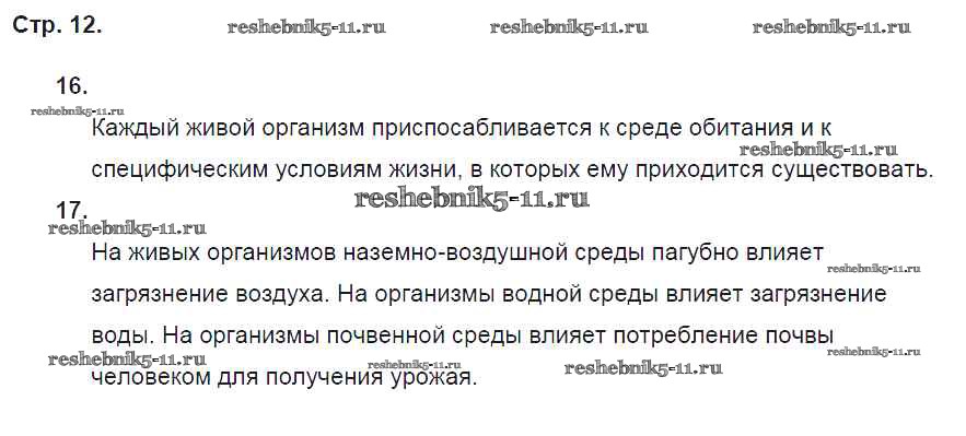 Готовая домашняя работа с ответами по Биологии за 5 класс Пасечник Рабочая тетрадь Вертикаль Дрофа 2015 ФГОС - § 4. Среды обитания организмов стр. 12