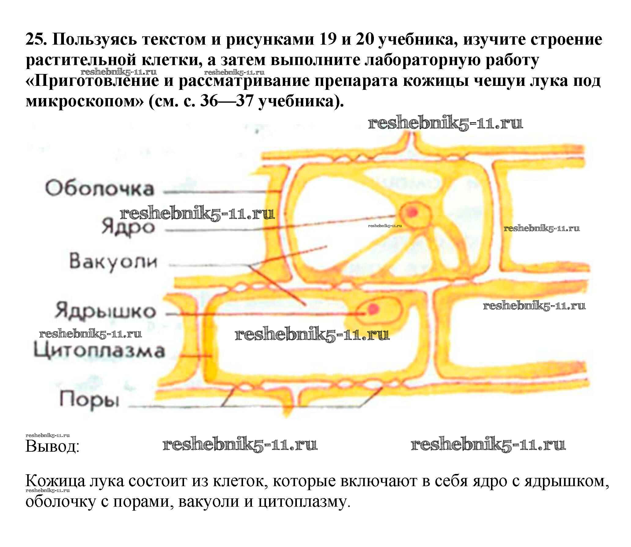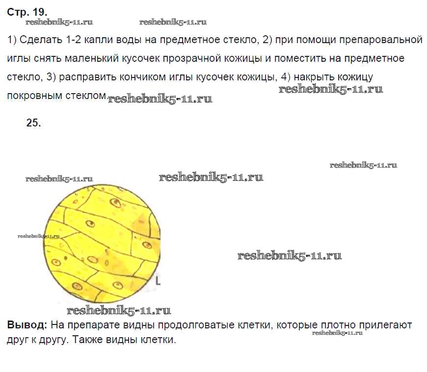 Готовая домашняя работа с ответами по Биологии за 5 класс Пасечник Рабочая тетрадь Вертикаль Дрофа 2015 ФГОС - § 7. Строение клетки стр. 19