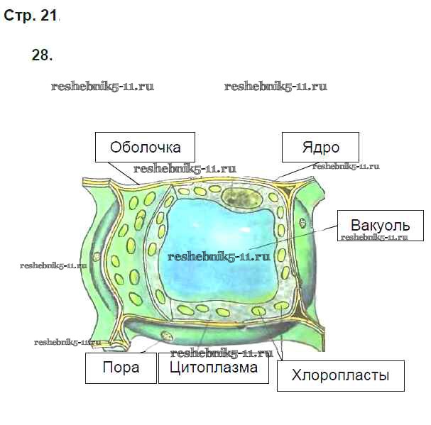 Готовая домашняя работа с ответами по Биологии за 5 класс Пасечник Рабочая тетрадь Вертикаль Дрофа 2015 ФГОС - § 7. Строение клетки стр. 21
