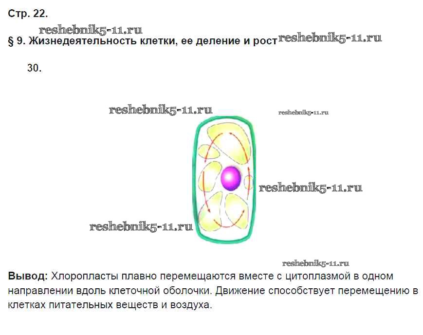 Готовая домашняя работа с ответами по Биологии за 5 класс Пасечник Рабочая тетрадь Вертикаль Дрофа 2015 ФГОС - § 9. Жизнедеятельность клетки, её деление и рост стр. 22