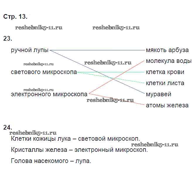 Готовая домашняя работа с ответами по Биологии за 5 класс Сонин Рабочая тетрадь Вертикаль Часть 1, 2, 3 Дрофа 2017 ФГОС - Часть 1. Живой организм: строение и изучение (страницы) стр. 13
