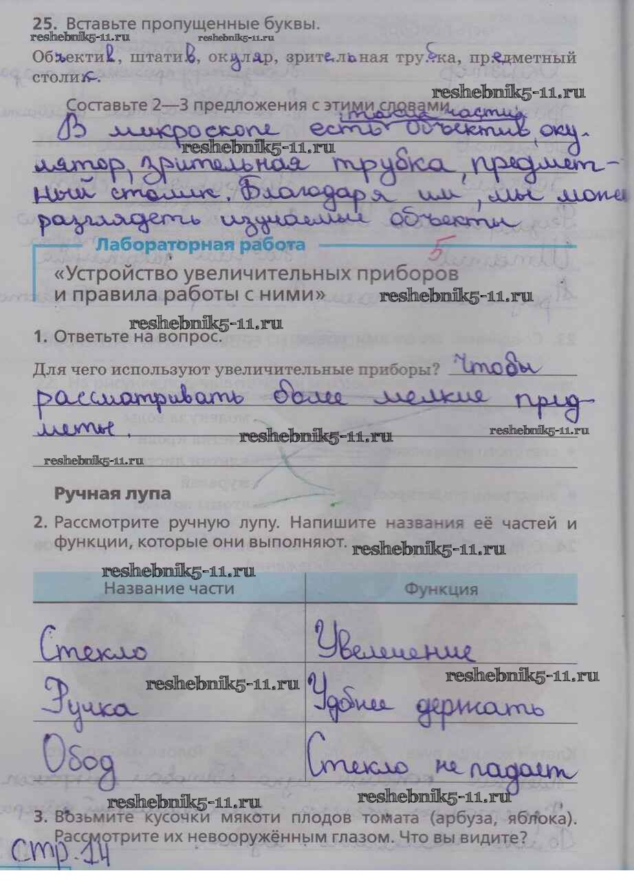 Решебник 3 / часть 1. живой организм: строение и изучение / стр. 14