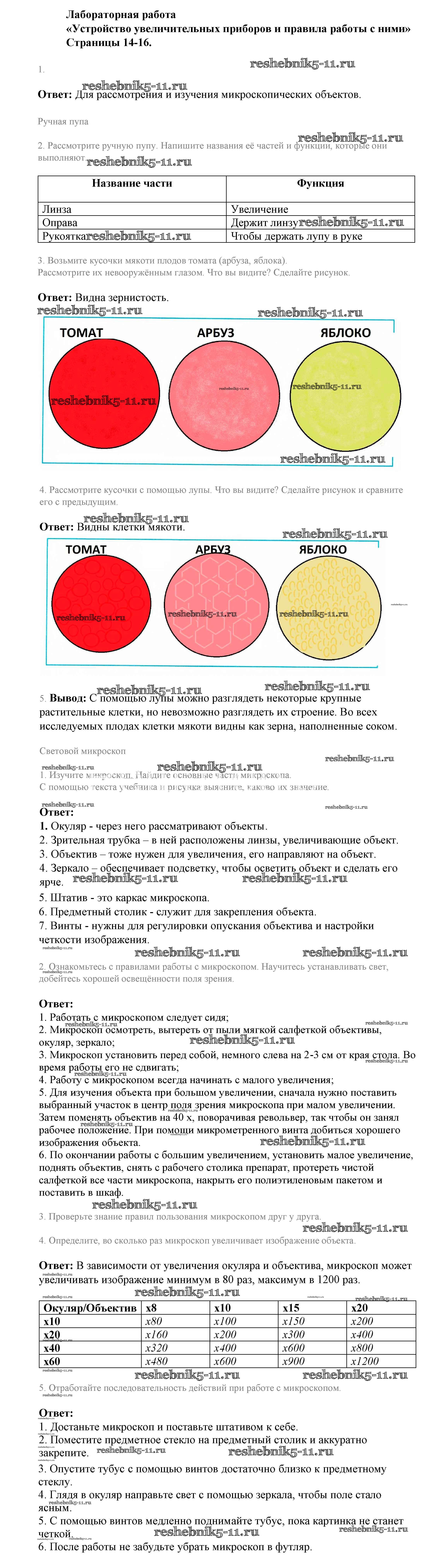 Решебник 1 / часть 1. живой организм: строение и изучение / стр. 14