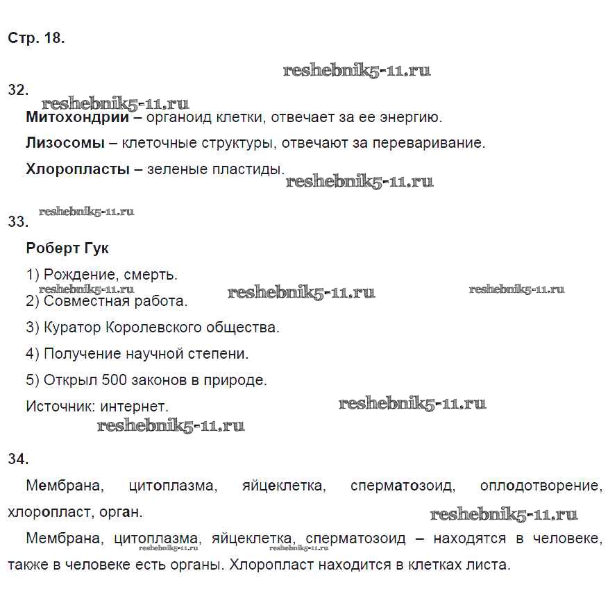 Решебник 2 / часть 1. живой организм: строение и изучение / стр. 18