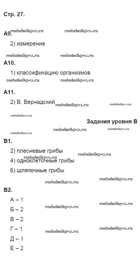 Готовая домашняя работа с ответами по Биологии за 5 класс Сонин Рабочая тетрадь Вертикаль Часть 1, 2, 3 Дрофа 2017 ФГОС - Часть 1. Живой организм: строение и изучение (страницы) стр. 27