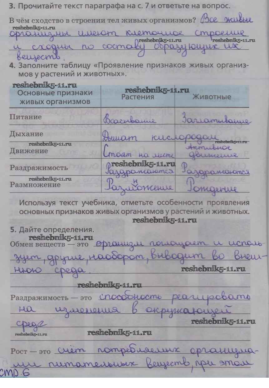 Решебник 3 / часть 1. живой организм: строение и изучение / стр. 6