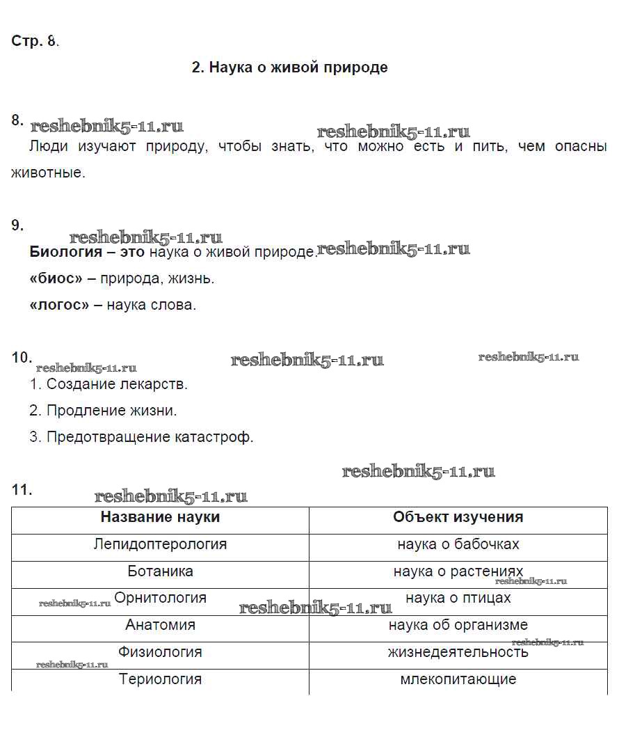 Решебник 2 / часть 1. живой организм: строение и изучение / стр. 8