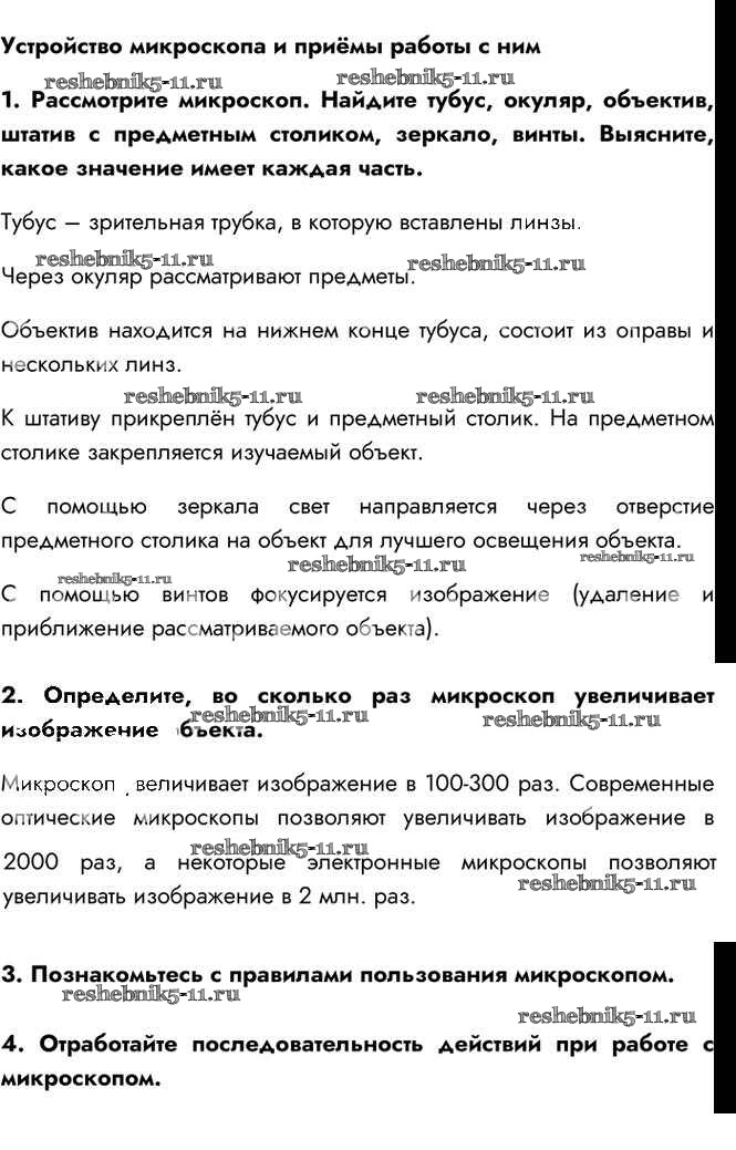 Готовая домашняя работа с ответами по Биологии за 5 класс Пасечник Учебник Линейный курс Просвещение 2021 ФГОС - Лабораторные работы Устройство микроскопа