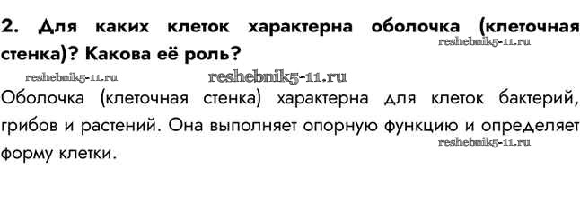 Готовая домашняя работа с ответами по Биологии за 5 класс Пасечник Учебник Линейный курс Просвещение 2021 ФГОС - Вопросы 2