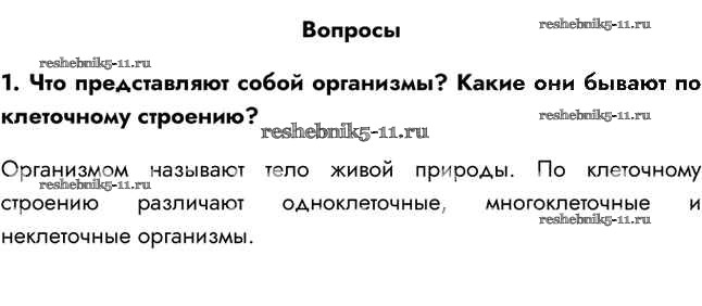 Готовая домашняя работа с ответами по Биологии за 5 класс Пасечник Учебник Линейный курс Просвещение 2021 ФГОС - Вопросы 1