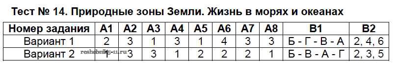 Тест №14. Природные зоны Земли. Жизнь в морях и океанах