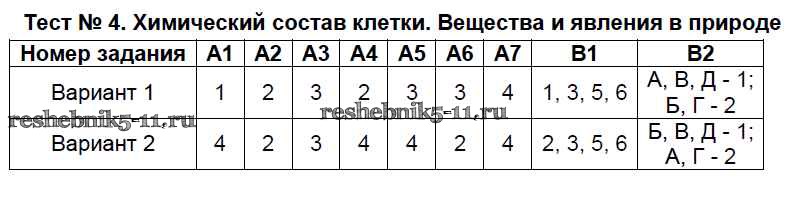 Биология за 5 класс Богданов Контрольно-измерительные материалы (КИМ) ВАКО тест Тест №4. Химический состав клетки. Вещества и явления в природе. Великие естествоиспытатели