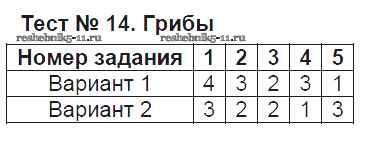 Готовая домашняя работа с ответами по Биологии за 5 класс Богданов Тесты УМК Экзамен 2017 ФГОС - Тесты Тест №14. Грибы