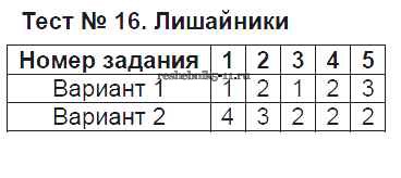Готовая домашняя работа с ответами по Биологии за 5 класс Богданов Тесты УМК Экзамен 2017 ФГОС - Тесты Тест №16. Лишайники