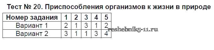 Готовая домашняя работа с ответами по Биологии за 5 класс Богданов Тесты УМК Экзамен 2017 ФГОС - Тесты Тест №20. Приспособления организмов к жизни в природе