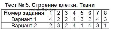 Готовая домашняя работа с ответами по Биологии за 5 класс Богданов Тесты УМК Экзамен 2017 ФГОС - Тесты Тест №5. Строение клетки. Ткани