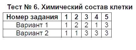 Готовая домашняя работа с ответами по Биологии за 5 класс Богданов Тесты УМК Экзамен 2017 ФГОС - Тесты Тест №6. Химический состав клетки