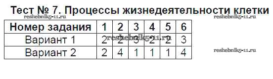Готовая домашняя работа с ответами по Биологии за 5 класс Богданов Тесты УМК Экзамен 2017 ФГОС - Тесты Тест №7. Процессы жизнедеятельности клетки