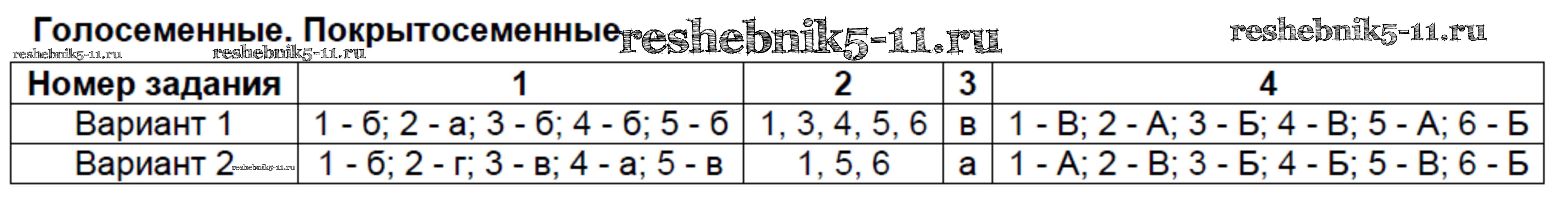 Готовая домашняя работа с ответами по Биологии за 5 класс Сонин Тесты Вертикаль Дрофа 2017 ФГОС - Тесты Тест №10. Голосеменные. Покрытосеменные