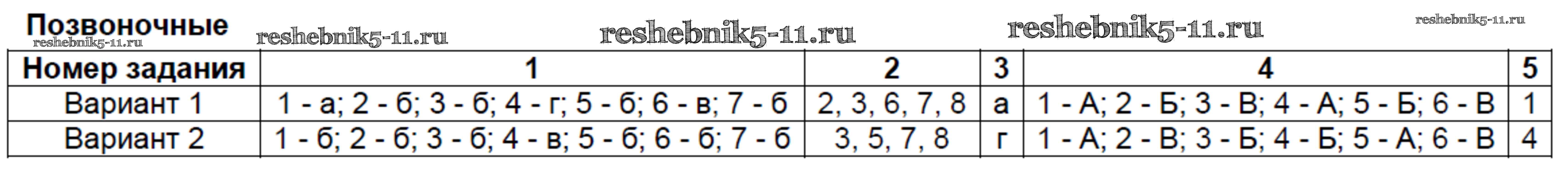 Готовая домашняя работа с ответами по Биологии за 5 класс Сонин Тесты Вертикаль Дрофа 2017 ФГОС - Тесты Тест №13. Позвоночные