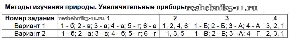 Готовая домашняя работа с ответами по Биологии за 5 класс Сонин Тесты Вертикаль Дрофа 2017 ФГОС - Тесты Тест №2. Методы изучения природы. Увеличительные приборы