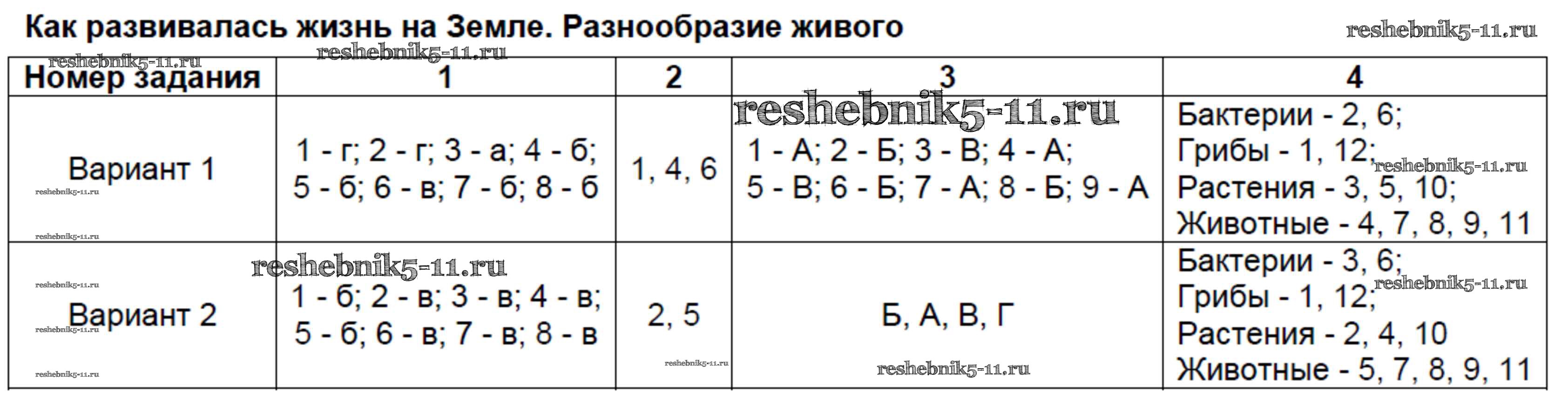 Готовая домашняя работа с ответами по Биологии за 5 класс Сонин Тесты Вертикаль Дрофа 2017 ФГОС - Тесты Тест №5. Как развивалась жизнь на Земле. Разнообразие живого
