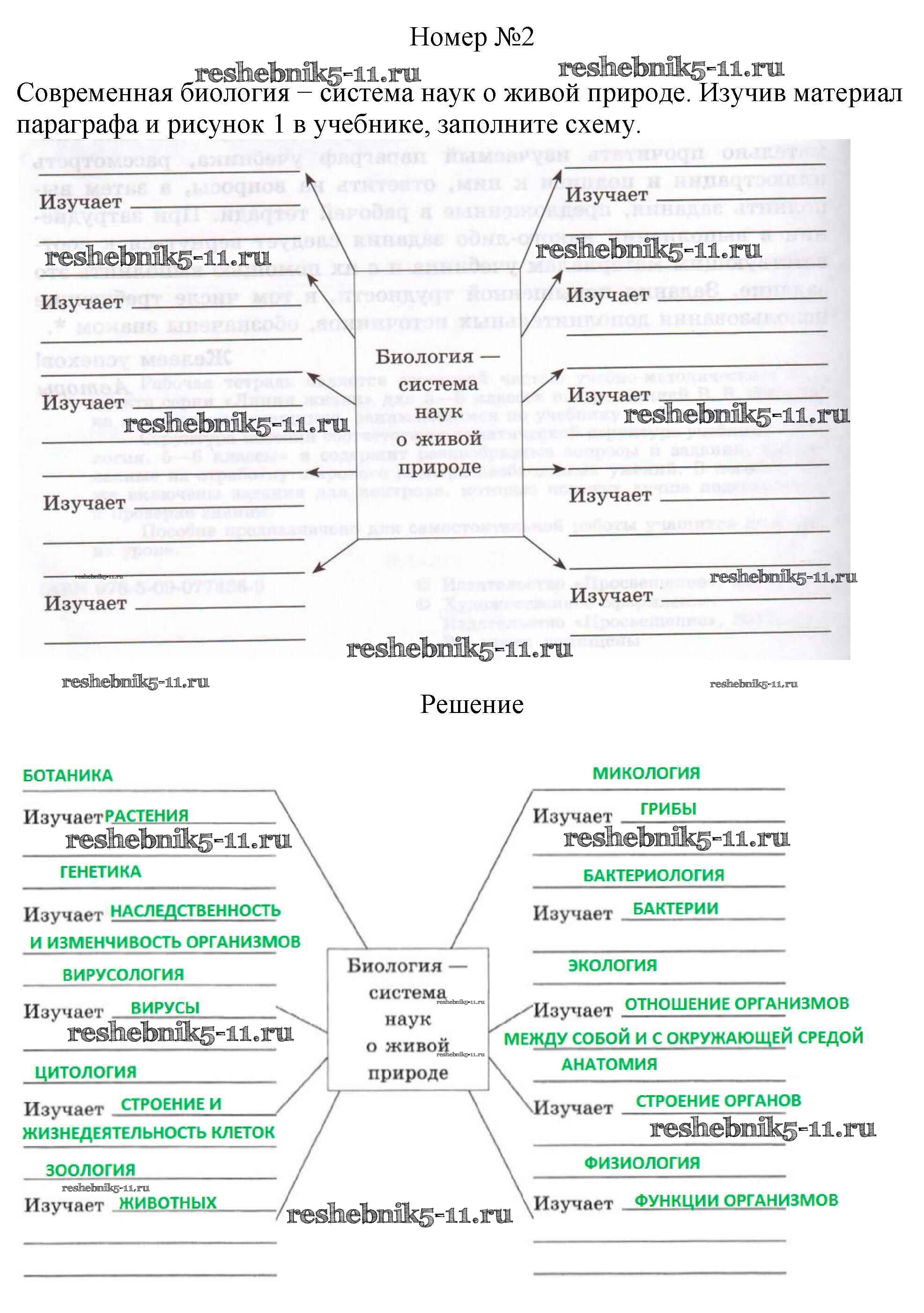 Готовая домашняя работа с ответами по Биологии за 5 класс Пасечник, Суматохин, Калинова, Швецов, Гапонюк Рабочая тетрадь Линия жизни Просвещение 2015 ФГОС - §1 2