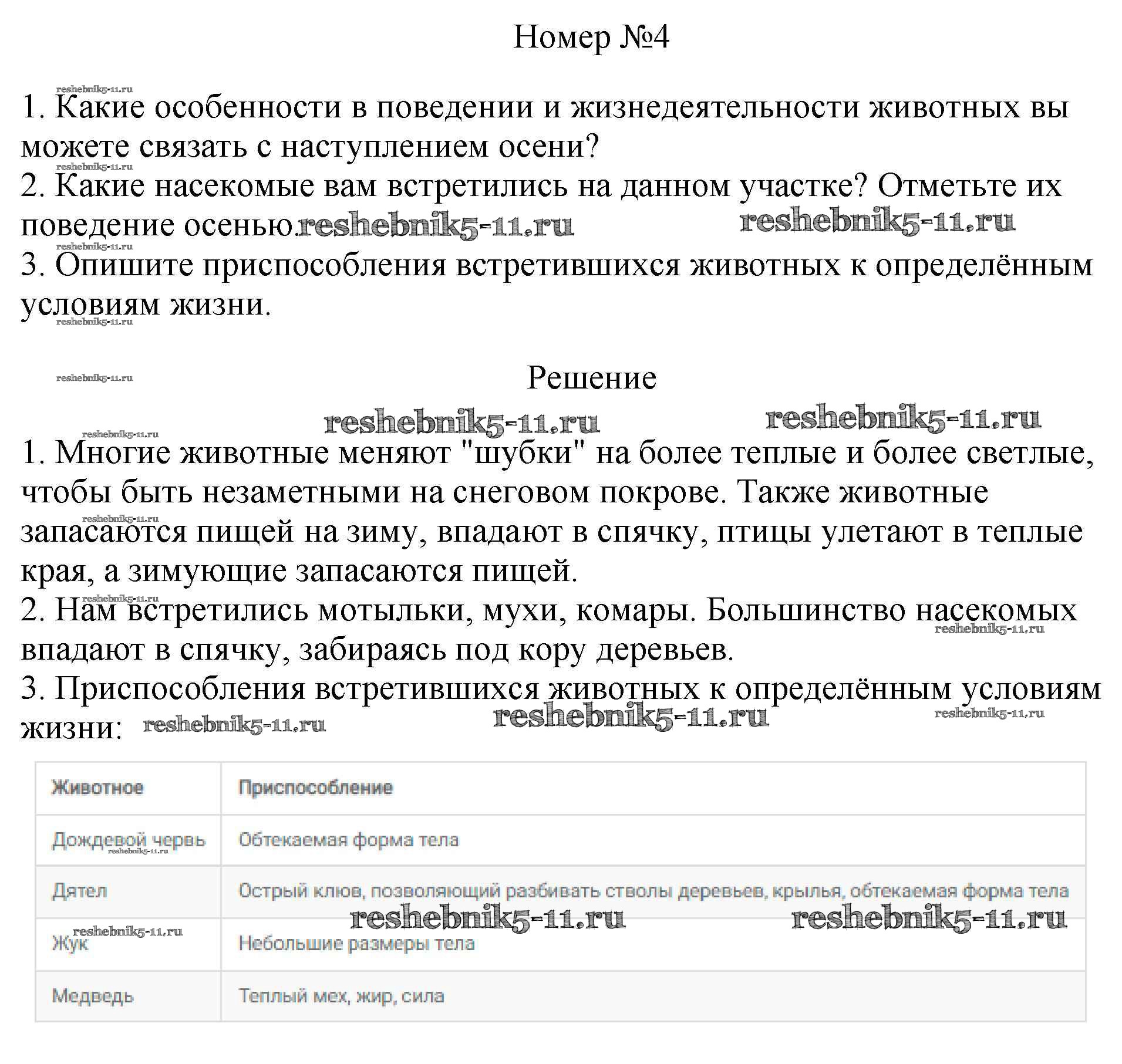 Готовая домашняя работа с ответами по Биологии за 5 класс Пасечник, Суматохин, Калинова, Швецов, Гапонюк Рабочая тетрадь Линия жизни Просвещение 2015 ФГОС - Экскурсия "Разнообразие живых организмов. Осенние явления в жизни растений и животных" 4