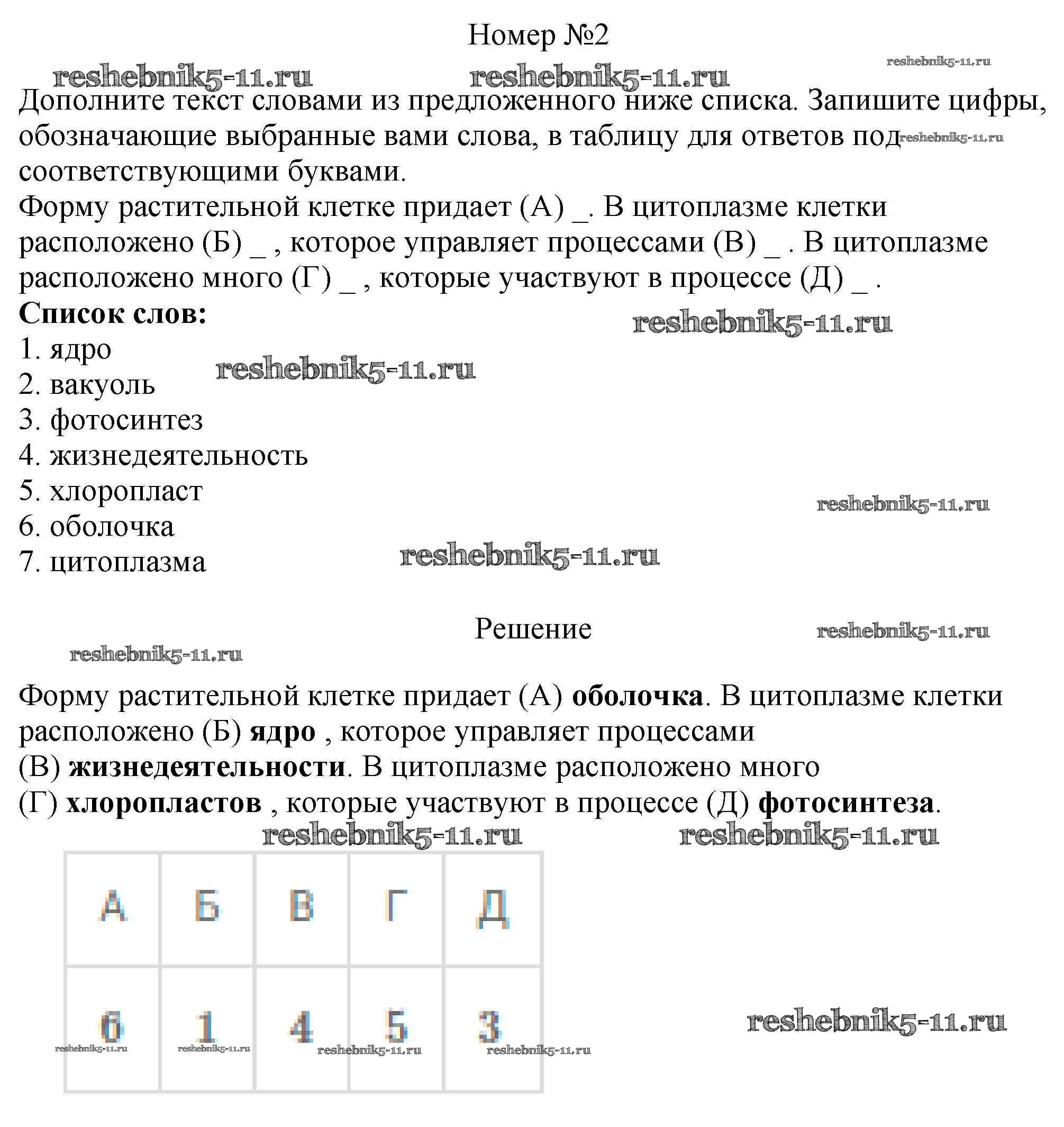 Готовая домашняя работа с ответами по Биологии за 5 класс Пасечник, Суматохин, Калинова, Швецов, Гапонюк Рабочая тетрадь Линия жизни Просвещение 2015 ФГОС - Тестовый контроль №2 2