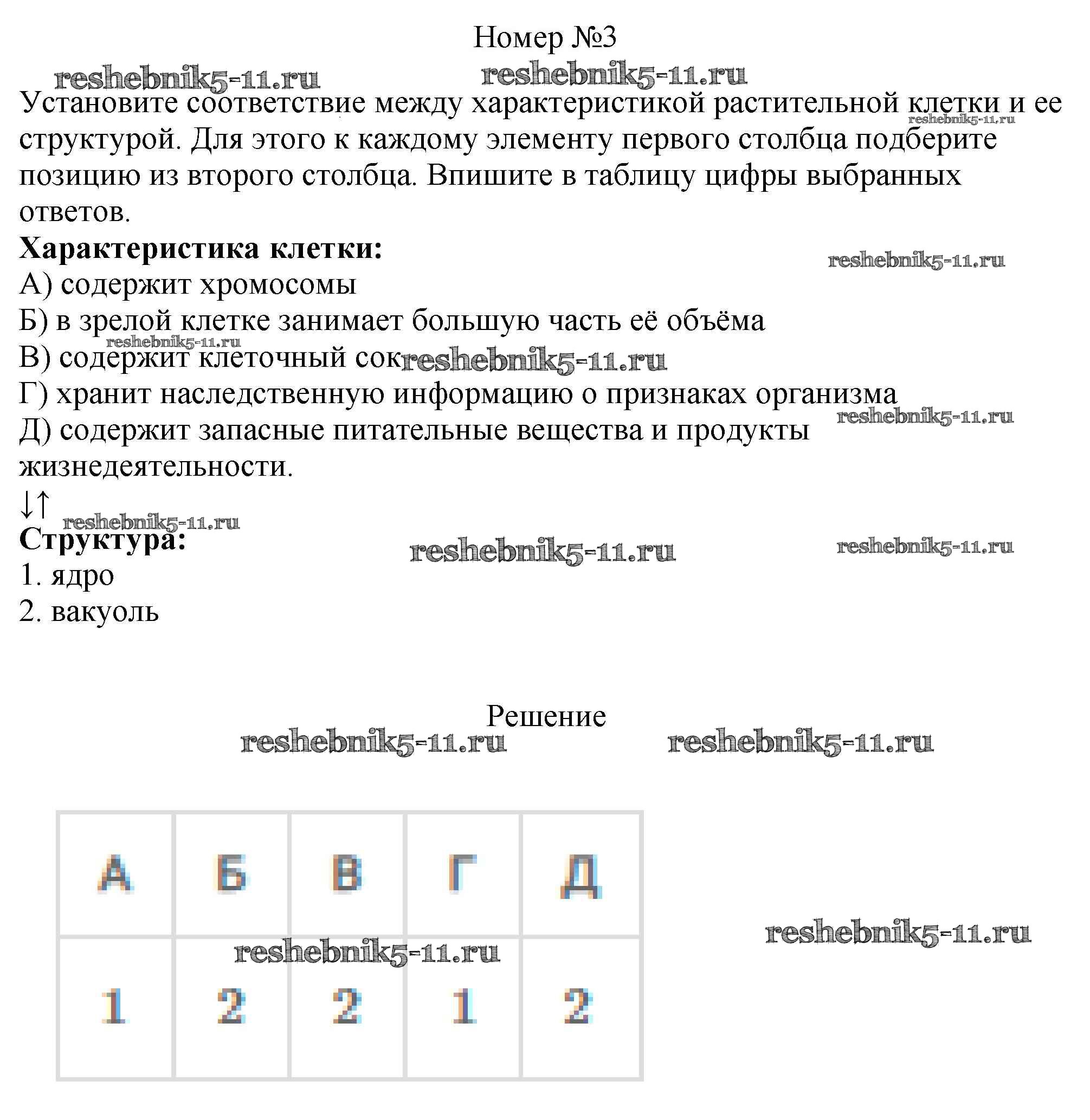 Готовая домашняя работа с ответами по Биологии за 5 класс Пасечник, Суматохин, Калинова, Швецов, Гапонюк Рабочая тетрадь Линия жизни Просвещение 2015 ФГОС - Тестовый контроль №2 3