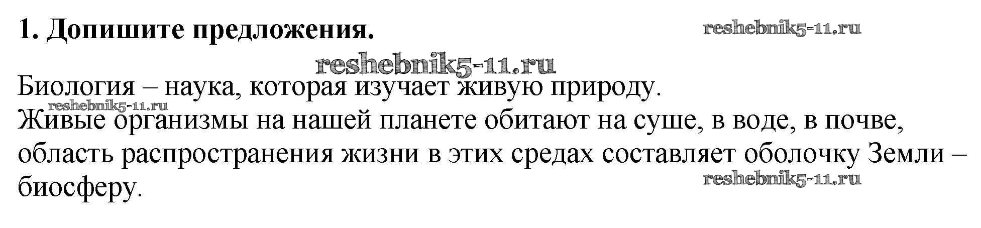Готовая домашняя работа с ответами по Биологии за 5 класс Пасечник, Суматохин, Калинова, Швецов, Гапонюк Рабочая тетрадь Линия жизни Просвещение 2015 ФГОС - Урок 1 1
