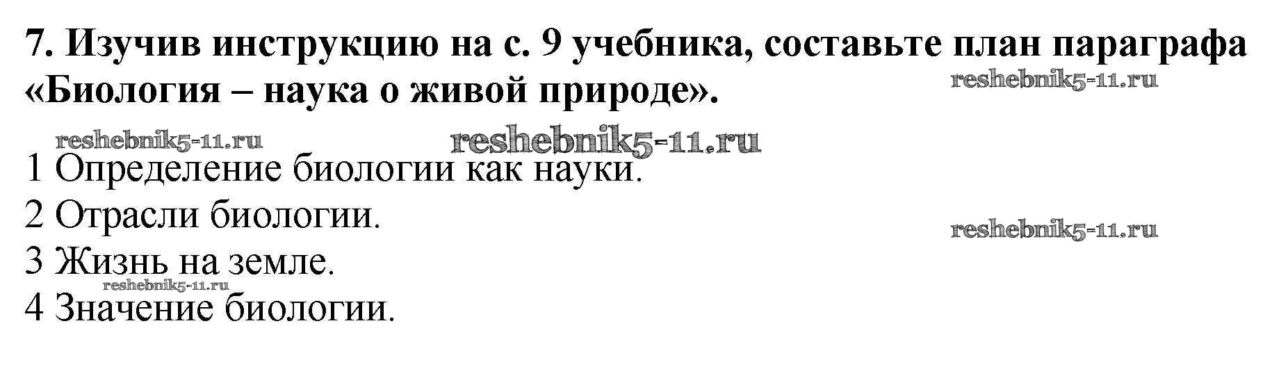 Готовая домашняя работа с ответами по Биологии за 5 класс Пасечник, Суматохин, Калинова, Швецов, Гапонюк Рабочая тетрадь Линия жизни Просвещение 2015 ФГОС - Урок 1 7