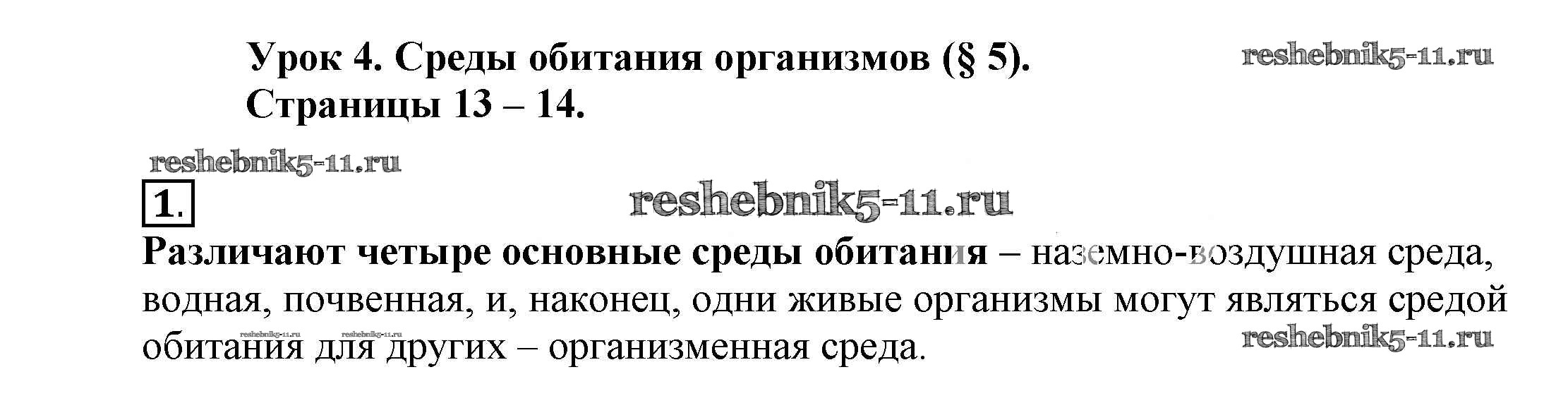 Готовая домашняя работа с ответами по Биологии за 5 класс Пасечник, Суматохин, Калинова, Швецов, Гапонюк Рабочая тетрадь Линия жизни Просвещение 2015 ФГОС - Урок 4 1