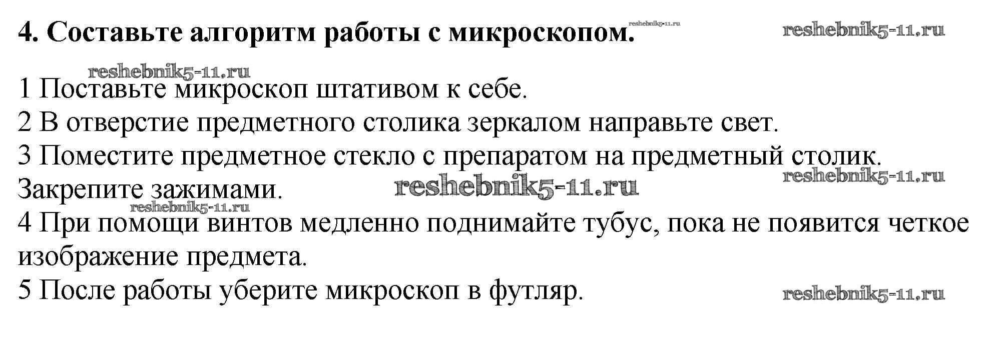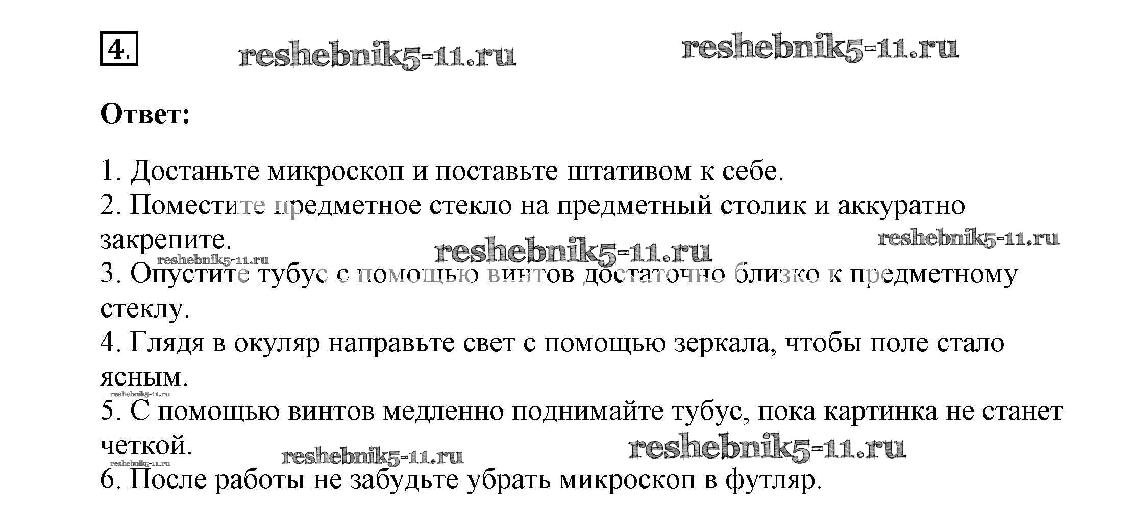 Готовая домашняя работа с ответами по Биологии за 5 класс Пасечник, Суматохин, Калинова, Швецов, Гапонюк Рабочая тетрадь Линия жизни Просвещение 2015 ФГОС - Урок 6 4