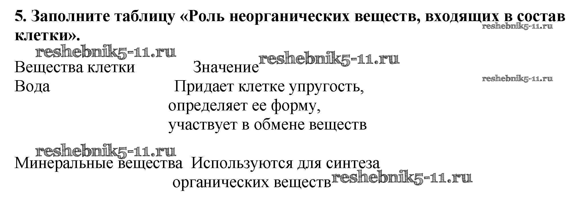 Готовая домашняя работа с ответами по Биологии за 5 класс Пасечник, Суматохин, Калинова, Швецов, Гапонюк Рабочая тетрадь Линия жизни Просвещение 2015 ФГОС - Урок 7 5