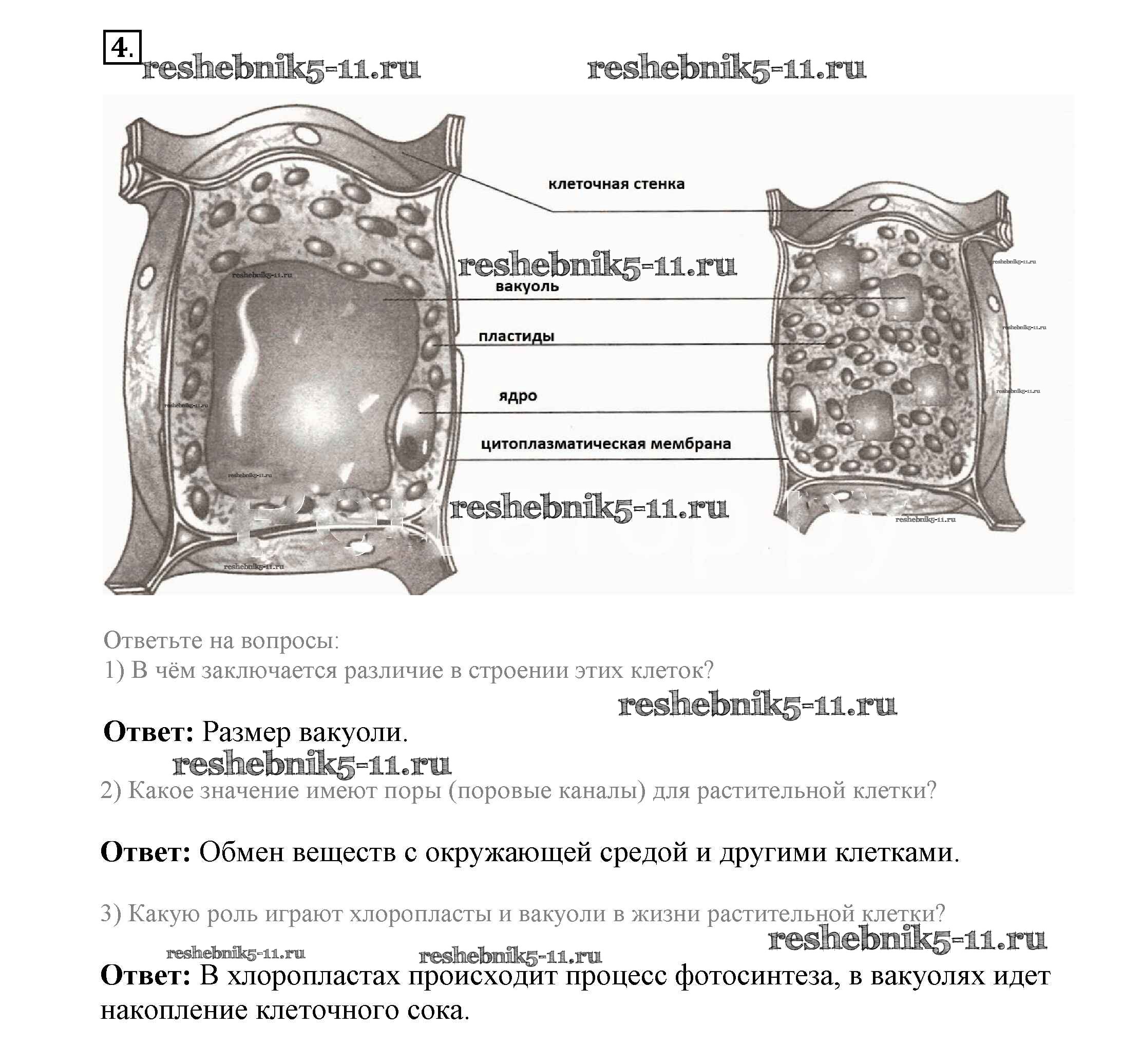 Готовая домашняя работа с ответами по Биологии за 5 класс Пасечник, Суматохин, Калинова, Швецов, Гапонюк Рабочая тетрадь Линия жизни Просвещение 2015 ФГОС - Урок 11 4