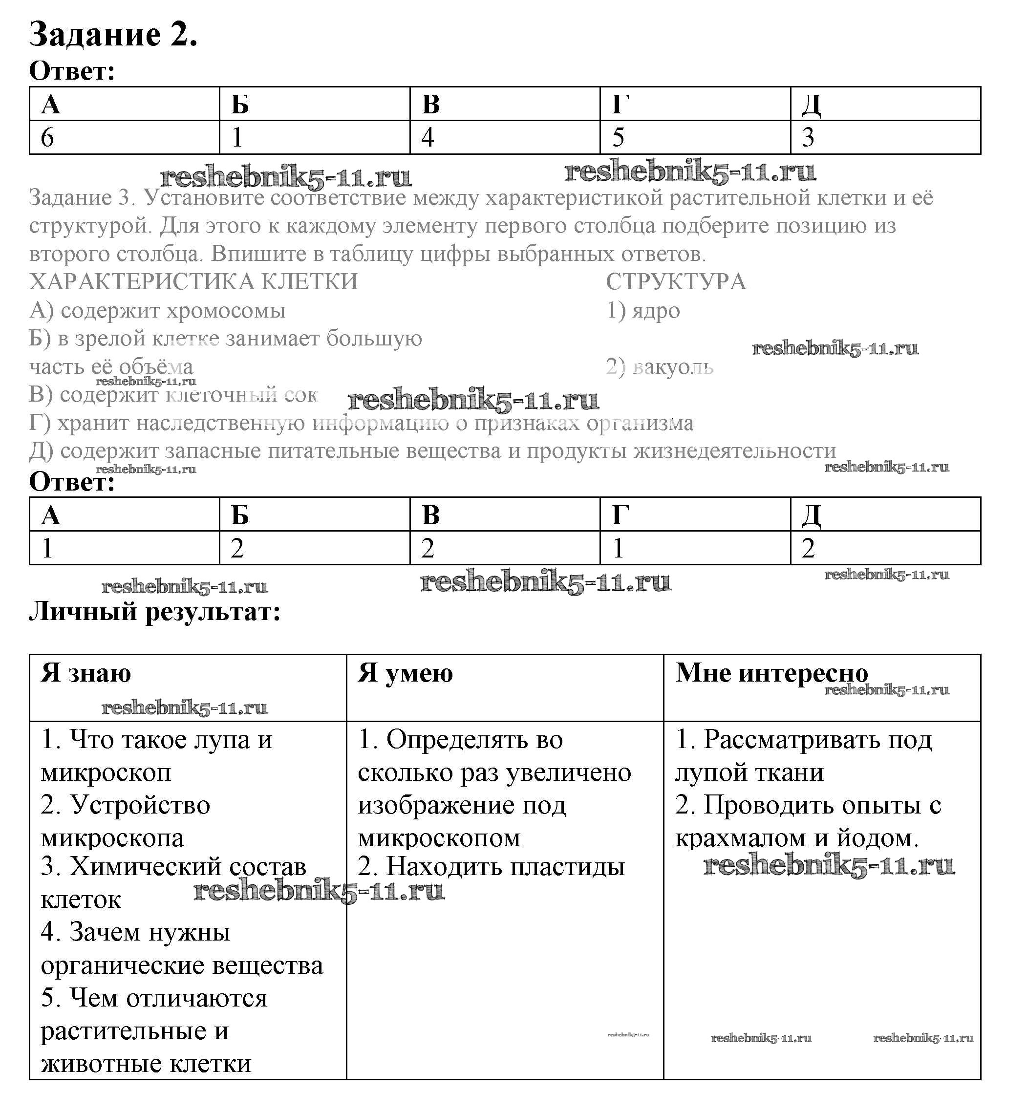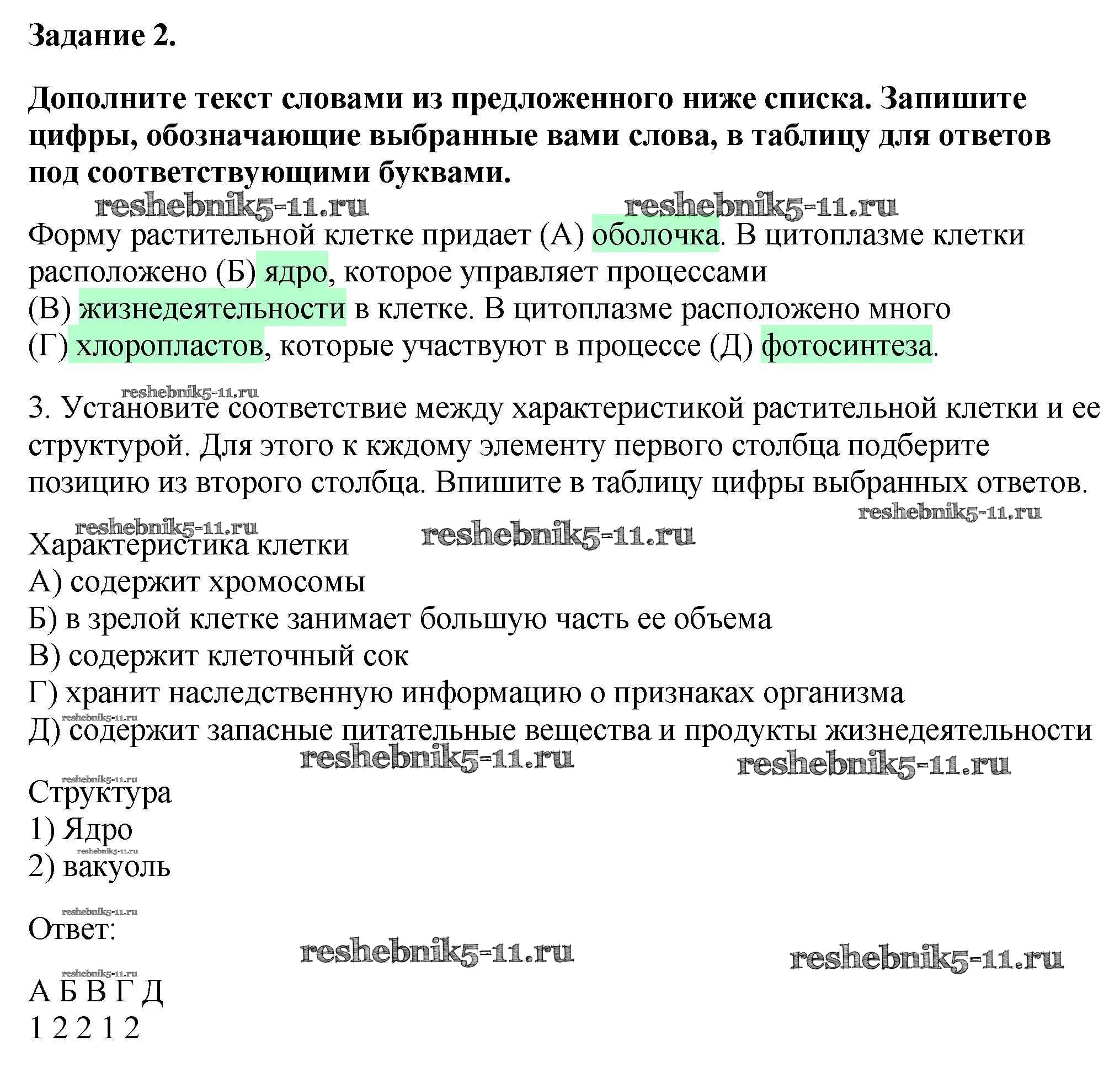 Готовая домашняя работа с ответами по Биологии за 5 класс Пасечник, Суматохин, Калинова, Швецов, Гапонюк Рабочая тетрадь Линия жизни Просвещение 2015 ФГОС - Тестовый контроль №2 2