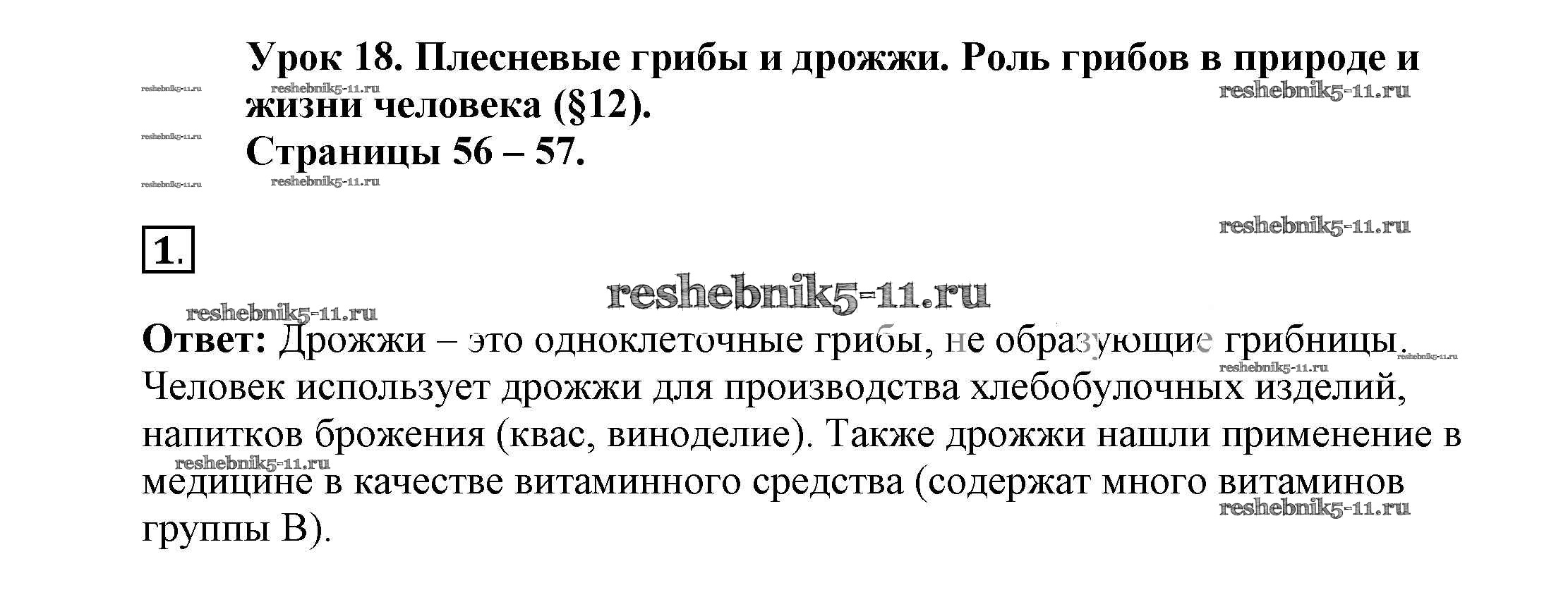 Готовая домашняя работа с ответами по Биологии за 5 класс Пасечник, Суматохин, Калинова, Швецов, Гапонюк Рабочая тетрадь Линия жизни Просвещение 2015 ФГОС - Урок 18 1