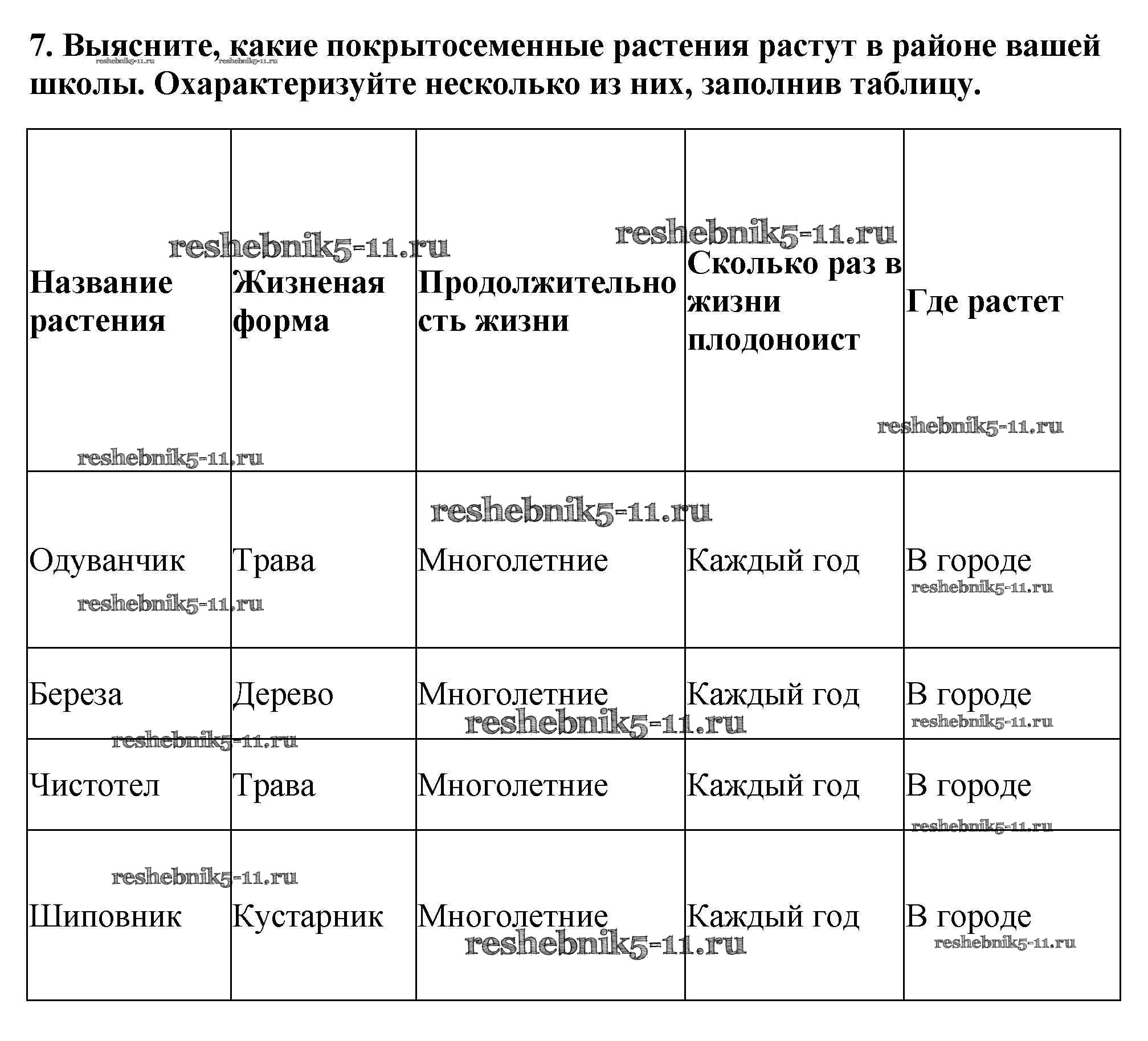 Готовая домашняя работа с ответами по Биологии за 5 класс Пасечник, Суматохин, Калинова, Швецов, Гапонюк Рабочая тетрадь Линия жизни Просвещение 2015 ФГОС - Урок 24 7