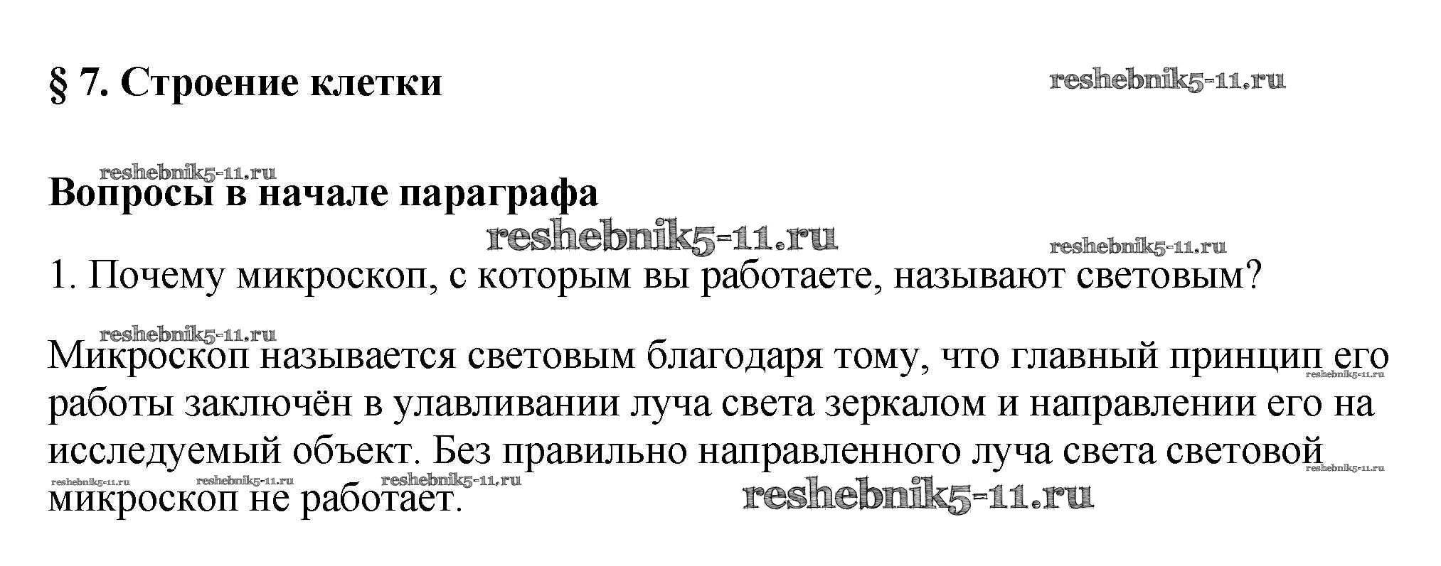 Готовая домашняя работа с ответами по Биологии за 5 класс Пасечник Учебник УМК Дрофа 2016 ФГОС - Вопросы в начале параграфа 1