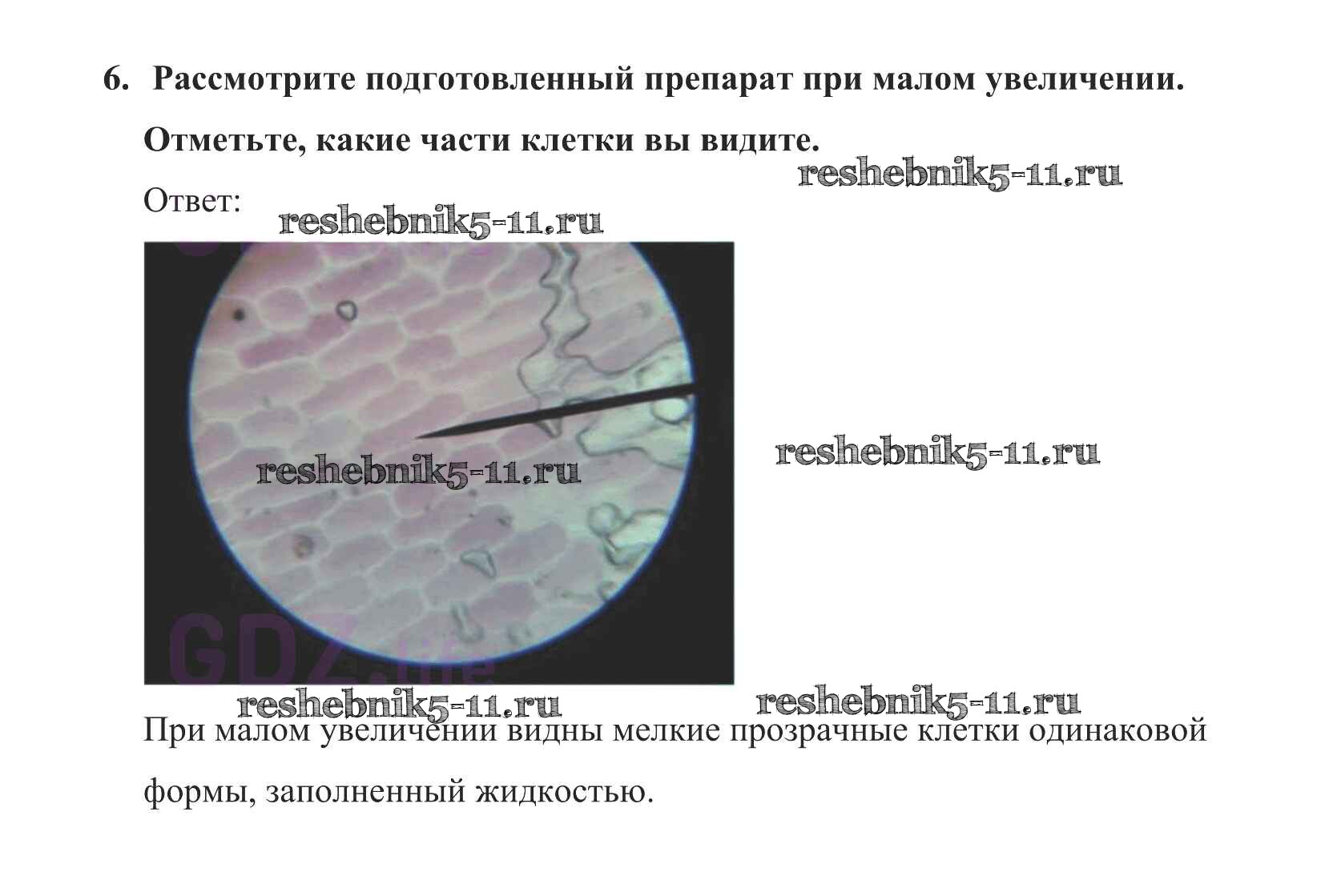 Решебник №1 / §7 / приготовление и рассматривание препарата кожицы чешуи лука под микроскопом / 6