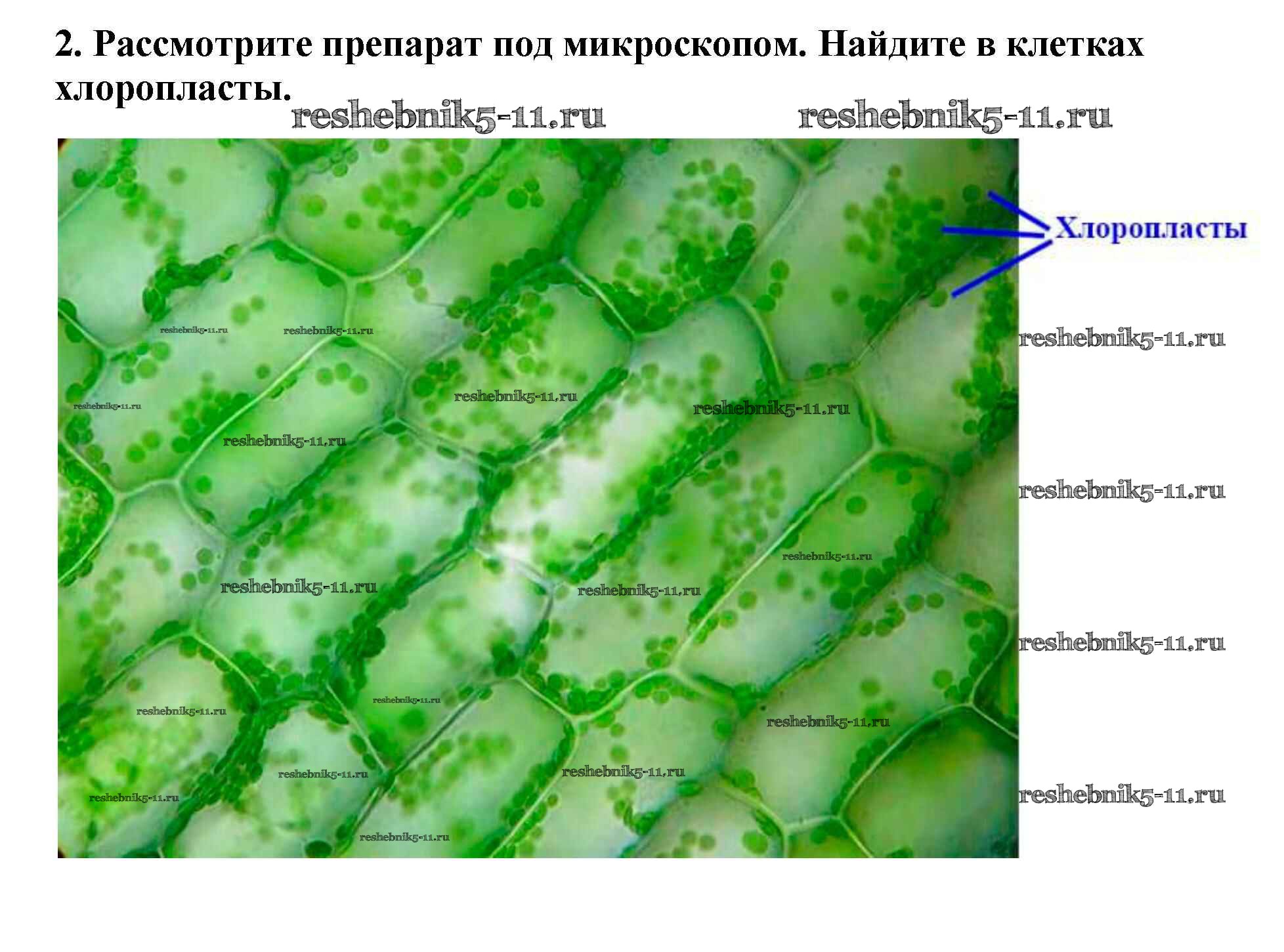 Решебник №3 / §7 / пластиды в клетках листа элодеи / 2