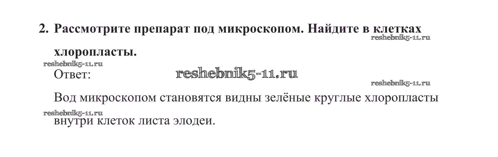 Решебник №1 / §7 / пластиды в клетках листа элодеи / 2