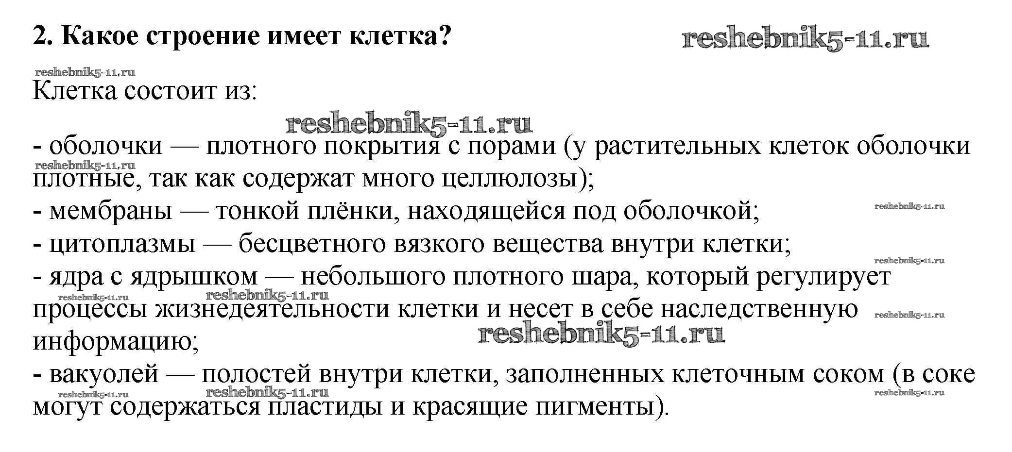 Готовая домашняя работа с ответами по Биологии за 5 класс Пасечник Учебник УМК Дрофа 2016 ФГОС - Вопросы в конце параграфа 2