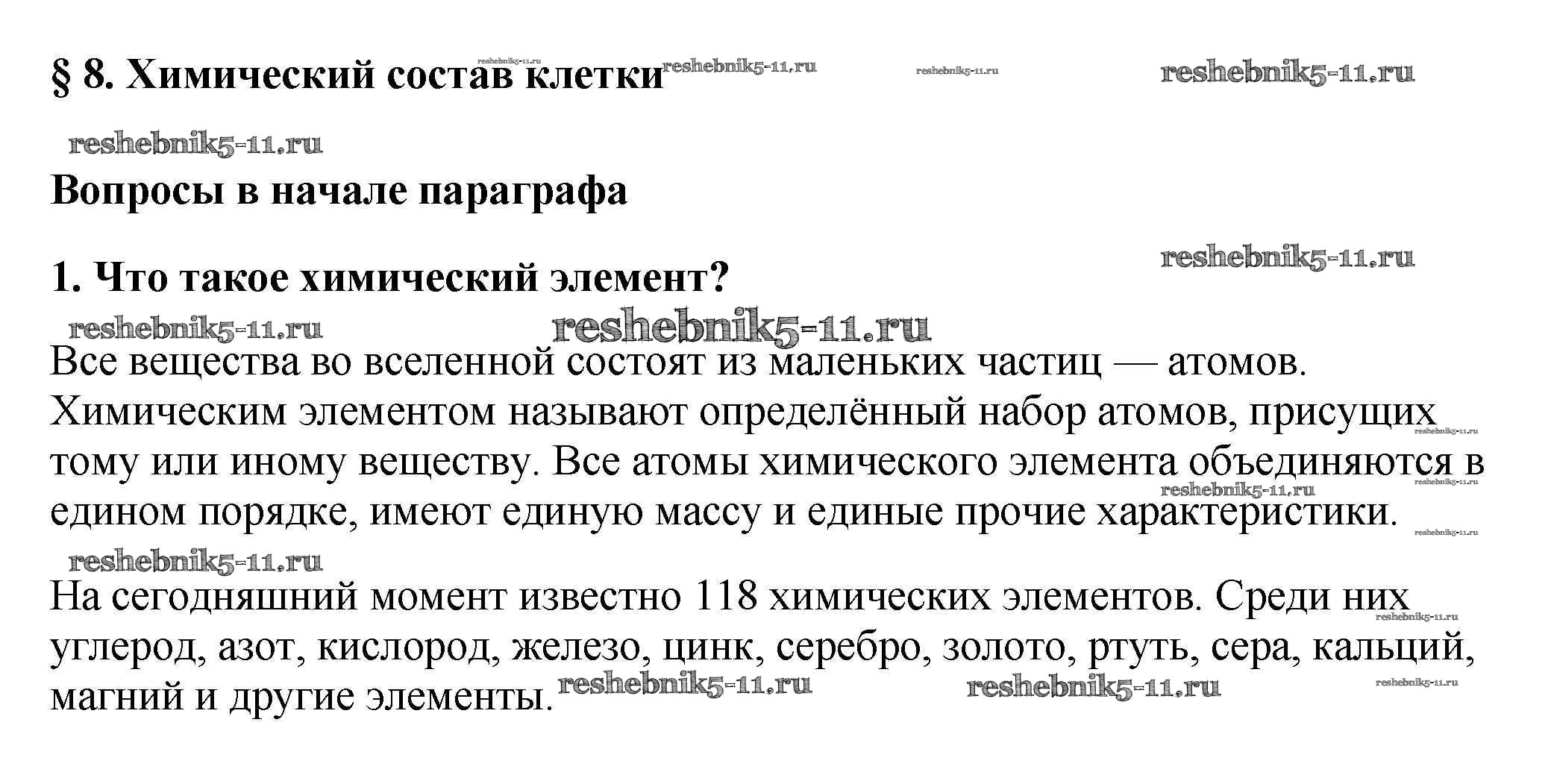 Готовая домашняя работа с ответами по Биологии за 5 класс Пасечник Учебник УМК Дрофа 2016 ФГОС - Вопросы в начале параграфа 1