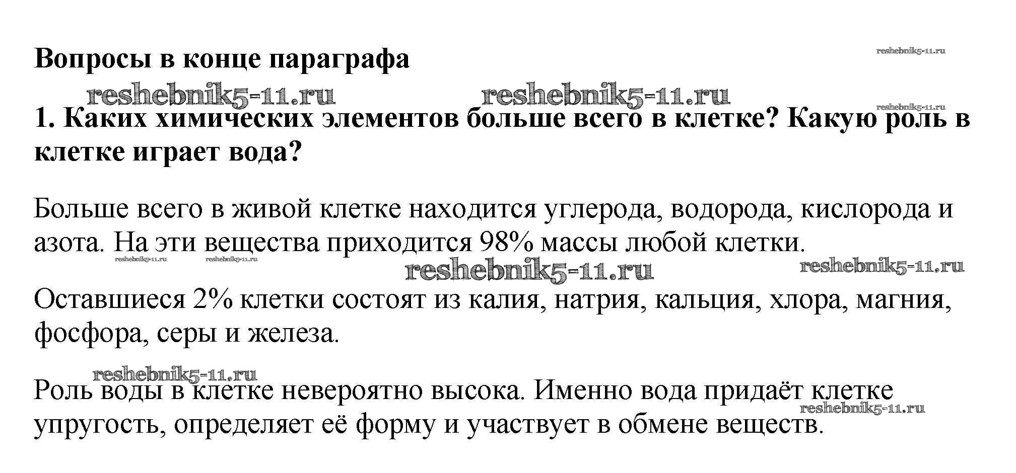Готовая домашняя работа с ответами по Биологии за 5 класс Пасечник Учебник УМК Дрофа 2016 ФГОС - Вопросы в конце параграфа 1