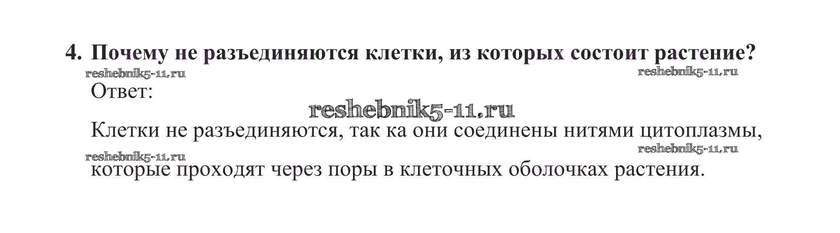 Готовая домашняя работа с ответами по Биологии за 5 класс Пасечник Учебник УМК Дрофа 2016 ФГОС - Вопросы в конце параграфа 4