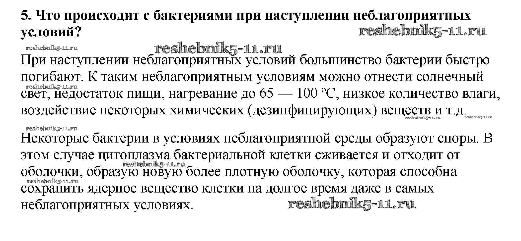 Готовая домашняя работа с ответами по Биологии за 5 класс Пасечник Учебник УМК Дрофа 2016 ФГОС - Вопросы в конце параграфа 5