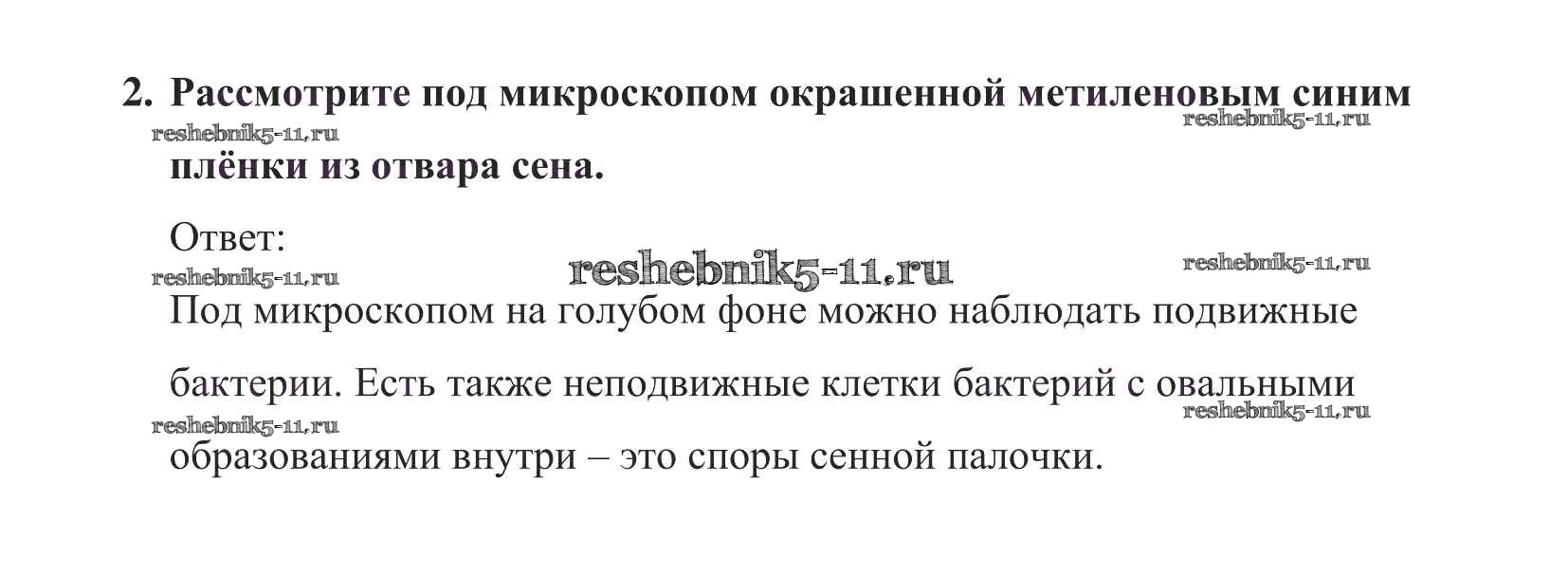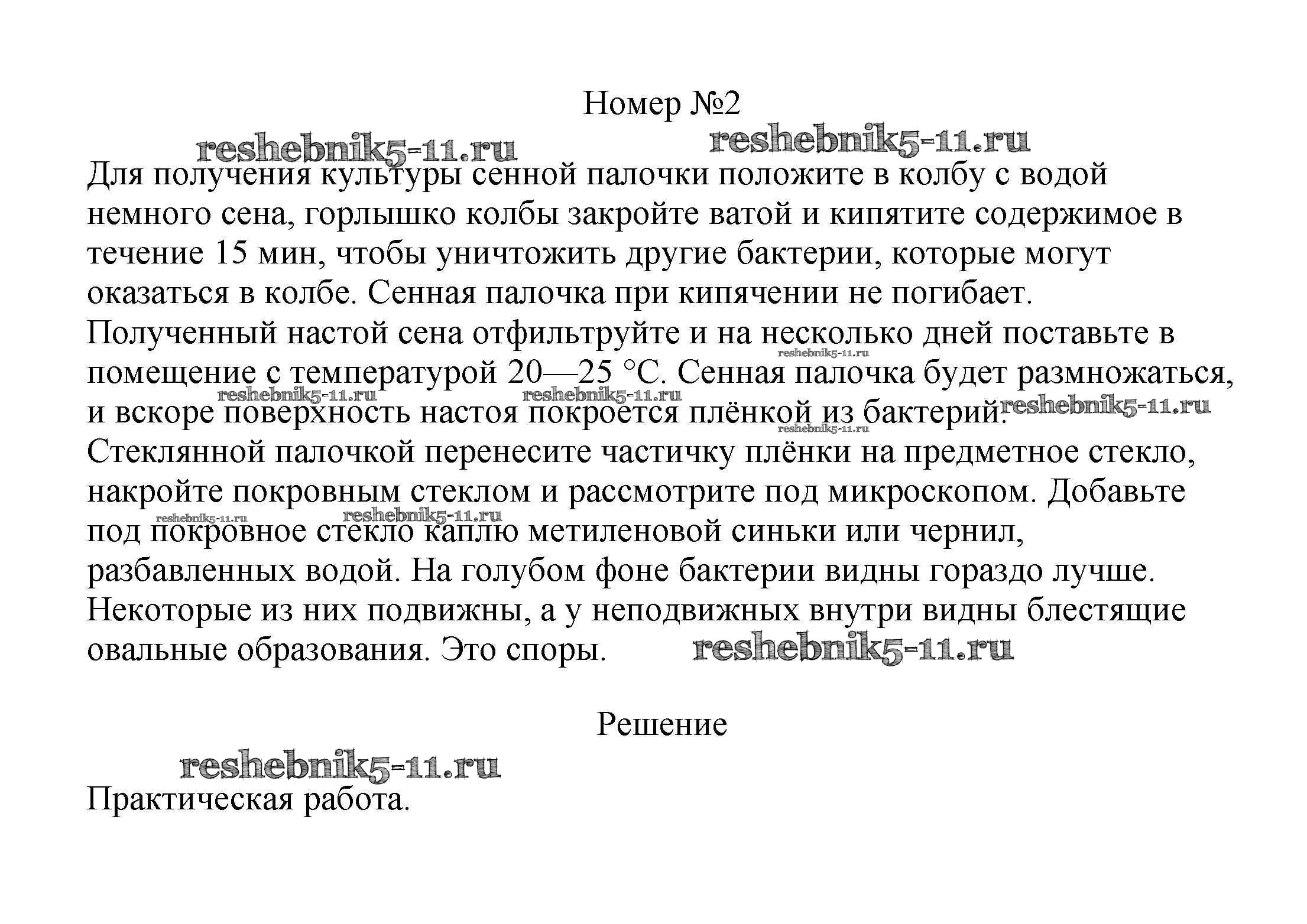 Готовая домашняя работа с ответами по Биологии за 5 класс Пасечник Учебник УМК Дрофа 2016 ФГОС - Задания 2